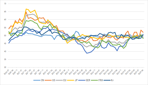 In September, the global manufacturing PMI (Purchasing Managers' Index) showed little fluctuation, and the economic recovery maintained a relatively stable momentum. Except for the United States and South Korea, the indices of China, the European Union and Japan declined. Although the global economic recovery has remained stable within a certain range, the situation of weak growth in market demand has not changed, and disruptions from trade frictions and geopolitical conflicts persist.