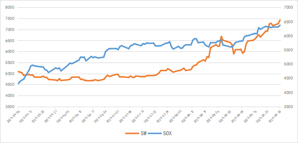 From the perspective of capital market indices, the Philadelphia Semiconductor Index (SOX) rose by 13.6% in September, and the China Semiconductor (SW) Industry Index increased by 15.9%. The prosperity of the global semiconductor capital market continues to move upward.