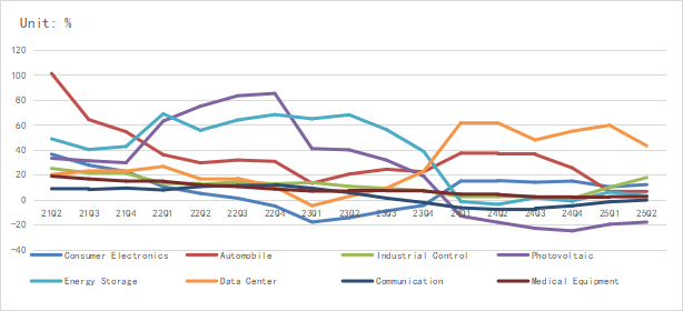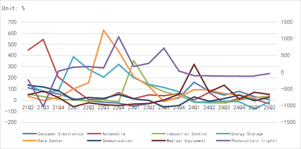 According to the latest data, the data center and medical device sectors remain relatively strong, demand for consumer electronics stays stable, the automotive and new energy sectors see a slight decline, while the industrial and communications sectors achieve significant growth.