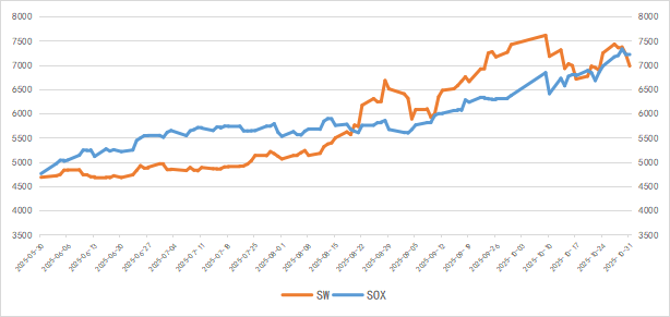Chart 6: Trend of SOX and SW Index in October