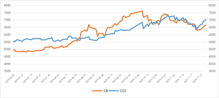 Chart 6: Trend of SOX and SW Index in November