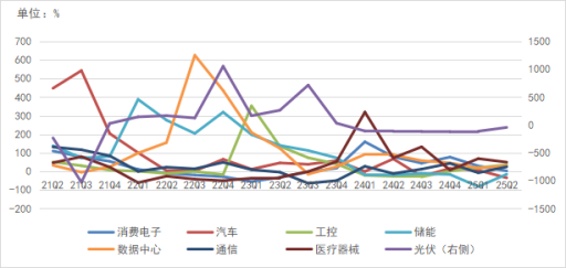 净利润方面,数据中心及医疗器械稳定,工业、通信回升较大,汽车及新能源承压明显。