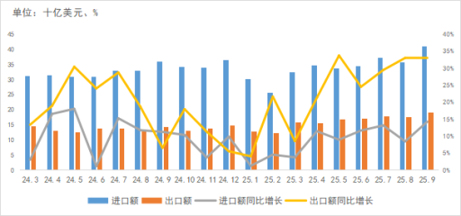 进出口方面,9月中国集成电路出口延续高增,近5个月均速超30%。