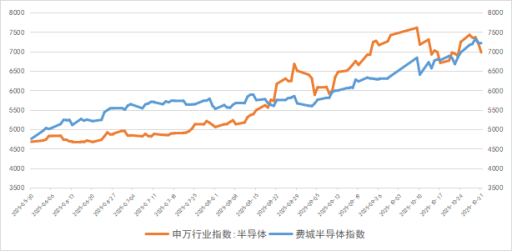 图表 6:10月费城及申万半导体指数走势